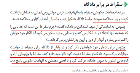 نکات : اتهام سقراط فاسد کردن جوانان و بی ایمانی به خدایان بود.