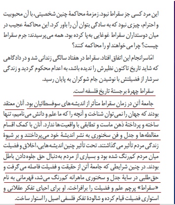 نکات: علت اینکه جوانان زیادی مجذوب سقراط شده بودند رفتار متواضعانه و همراه با احترام او بود.