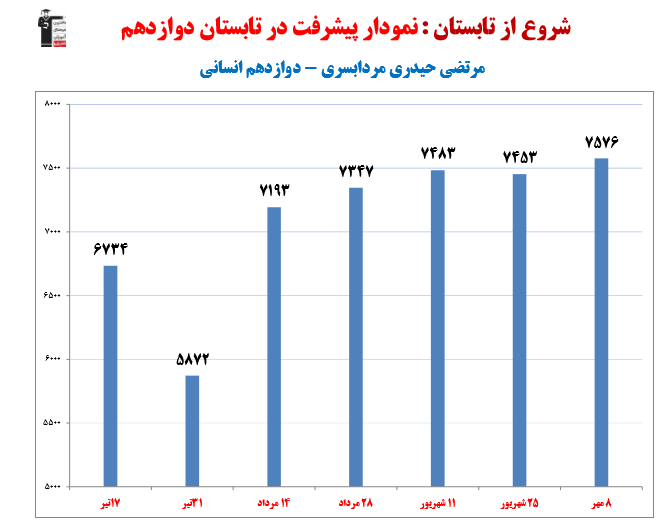 مرتضی حیدری ،قهرمان پیوستگی ،نمودارپیشرفت در3 سال ،91 آزمون