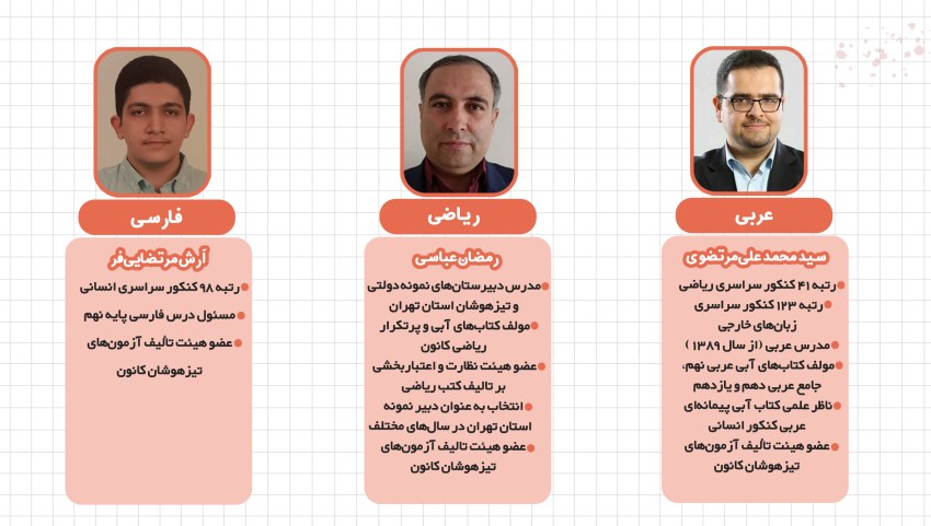 مدرسین دوره از دبیران با سابقه و طراحان سوالات تیزهوشان کانون هستند: