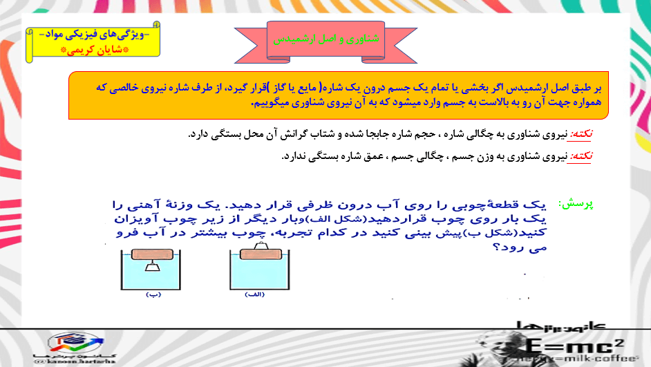 💥نکته:سطح آب داخل لولهی مویین تا جایی میتواند بالا رود که برایند نیروی دگرچسبی با وزن آب بالا آمده ،برابر باشد.
