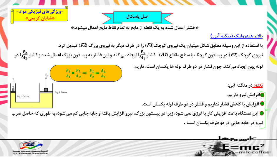 💥نکته :میزان بالا و پایین رفتن مایعات به مقدار فرو بردن لوله بستگی ندارد.