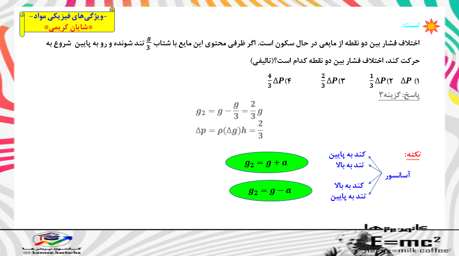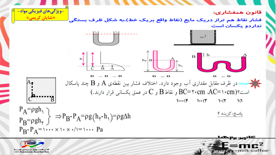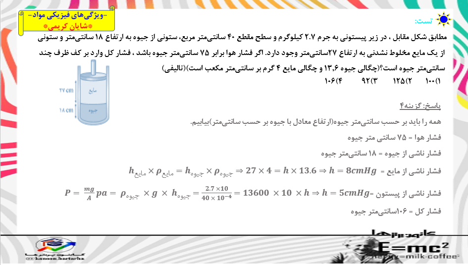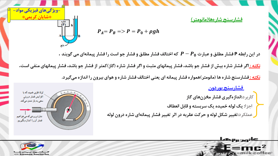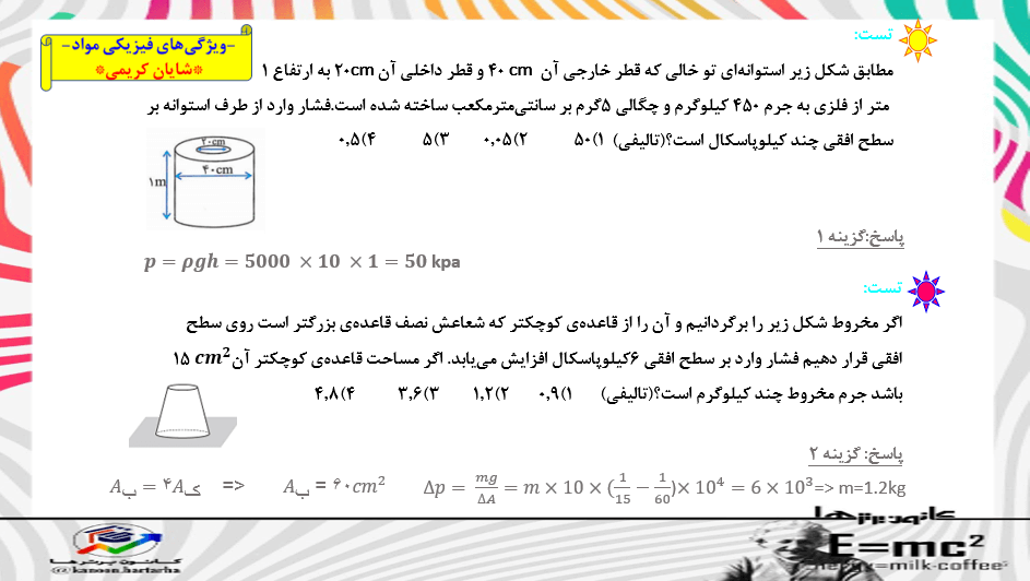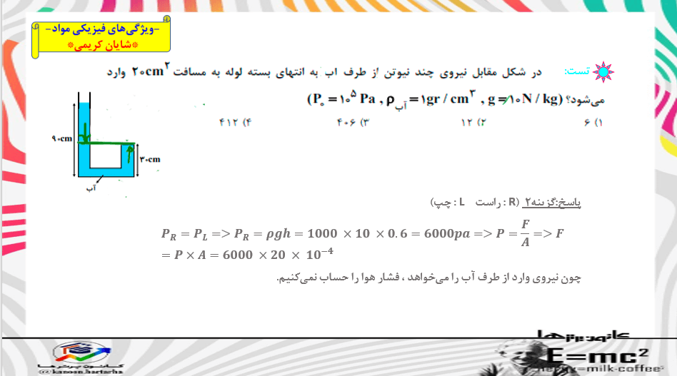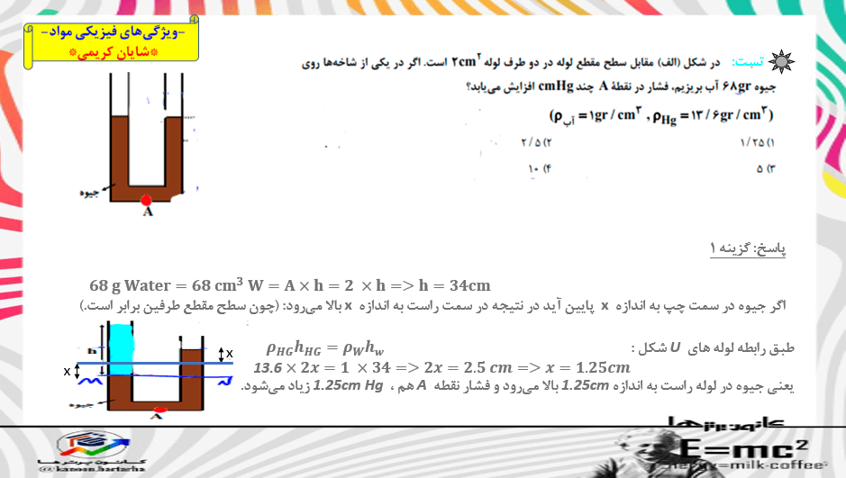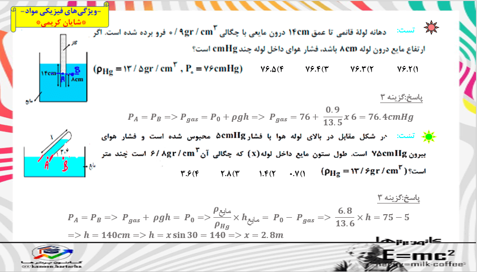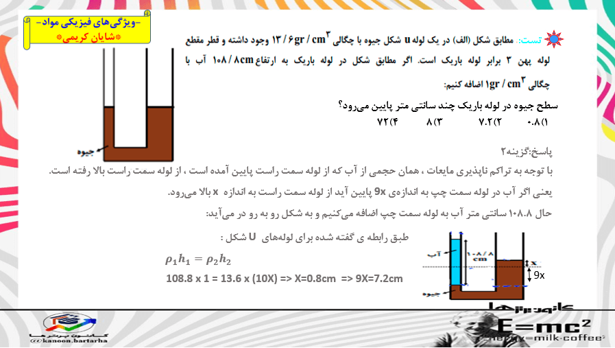 💥نکته:ارتفاع مایع درون لوله با شعاع لوله و چگالی مایع نسبت وارون دارد.