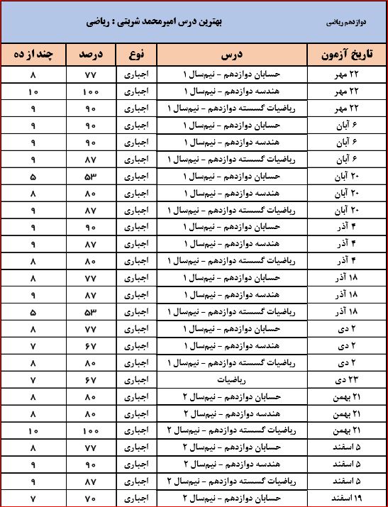 اگر در آزمون تیر ماه نسیت به آزمون دی ماه پیشرفت قابل ملاحظهای داشتید، توضیح دهید که در طی ماههای بین این دو آزمون چه برنامهای اجرا کردید؟