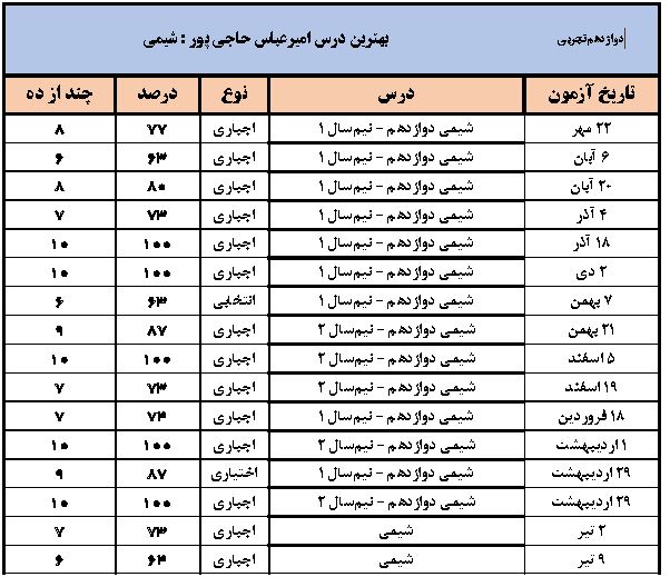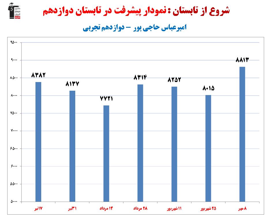 امیرعباس حاجیپور،قهرمان پیوستگی،نمودار پیشرفت 4سال،71 آزمون یبلسلب