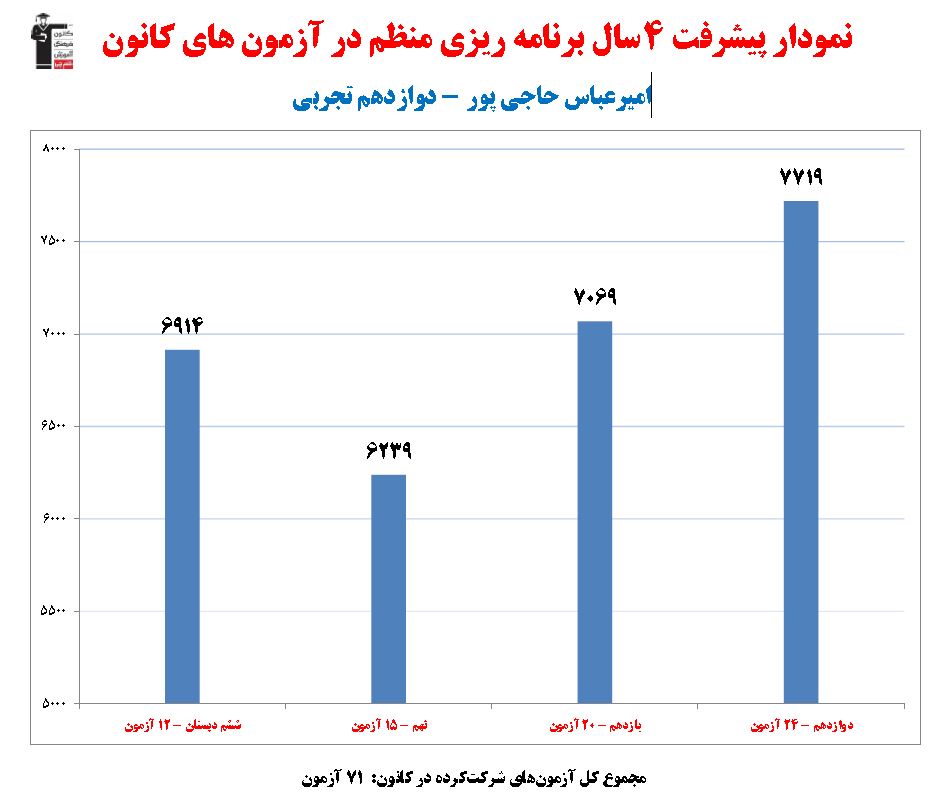 امیرعباس حاجیپور،قهرمان پیوستگی،نمودار پیشرفت 4سال،71 آزمون