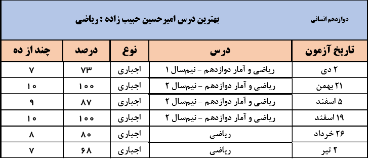 امیرحسین حبیب زاده رتبه 8 کنکور انسانی 1402 (1 سال، 10 آزمون)