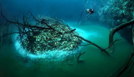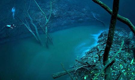 به گزارش فرادید، در اعماق غار آبی سنوته آنجلیتا (Cenote Angelita) در شبه جزیرۀ یوکاتان مکزیک، به شکلی باورنکردنی یک رودخانۀ «زیر آبی» جریان دارد. شکلگیری این رودخانۀ شگفتانگیز به دلیل وجود سولفید هیدروژن است که به خاطر سنگینتر بودنش نسبت به آب شور، جریانی کاملا متمایز را در قعر آب شکل داده است.
