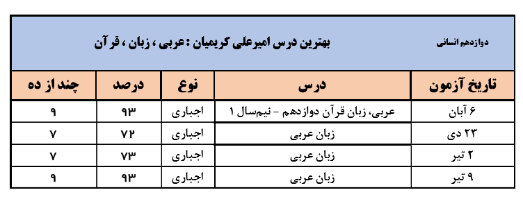 در عربی، بار اوّل به صورت جامع، حدود 2 ساعت درسنامه را میخواندم و بعد میرفتم سراغ تست.