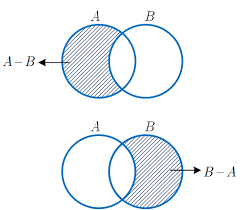مجموعه𝑨 − 𝑩(𝑨منهای𝑩) شامل همه عضوهایی است که عضو مجموعه𝑨باشند ولی عضو مجموعه𝑩 نباشند.