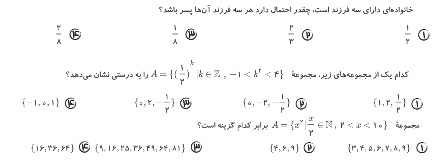مثال: صورت ریاضی هر مجموعه را بنویسید؟