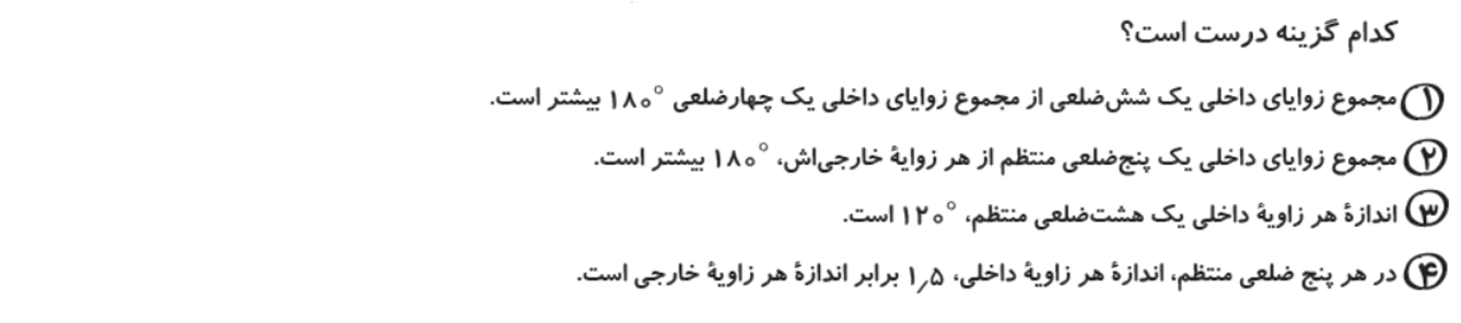 نکته : مجموع زاویه های خارجی هر چند ضلعی 360 درجه است.