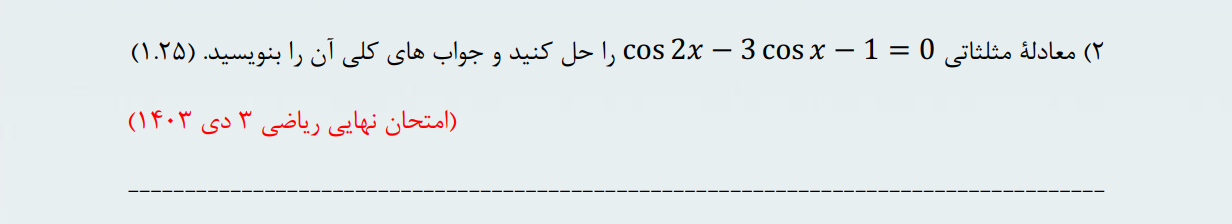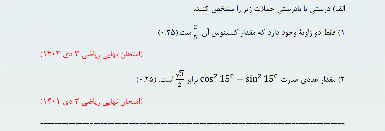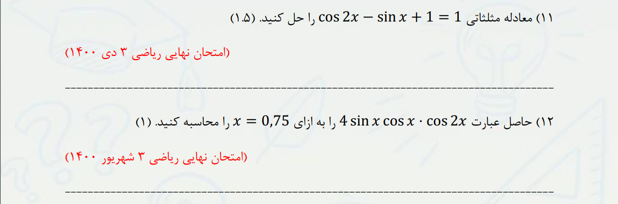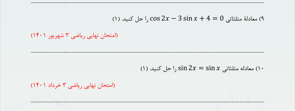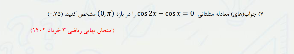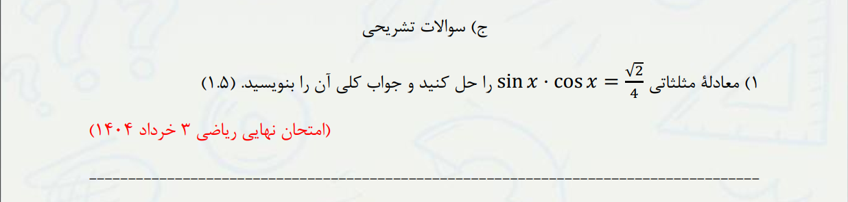 دانلود مستقیم تمام سوالات امتحان نهایی ریاضی تجربی به همراه پاسخ تشریحی | ||