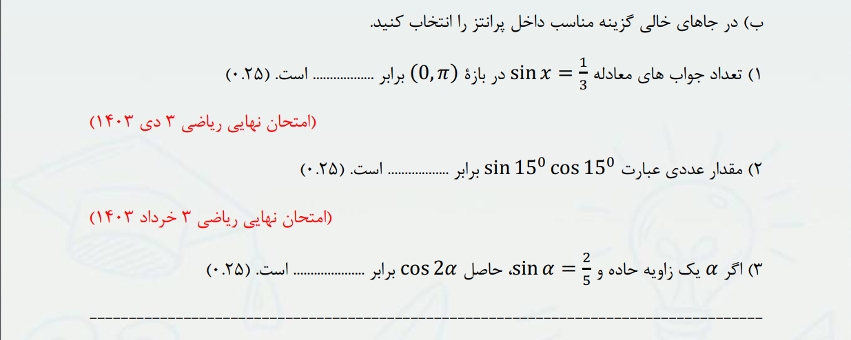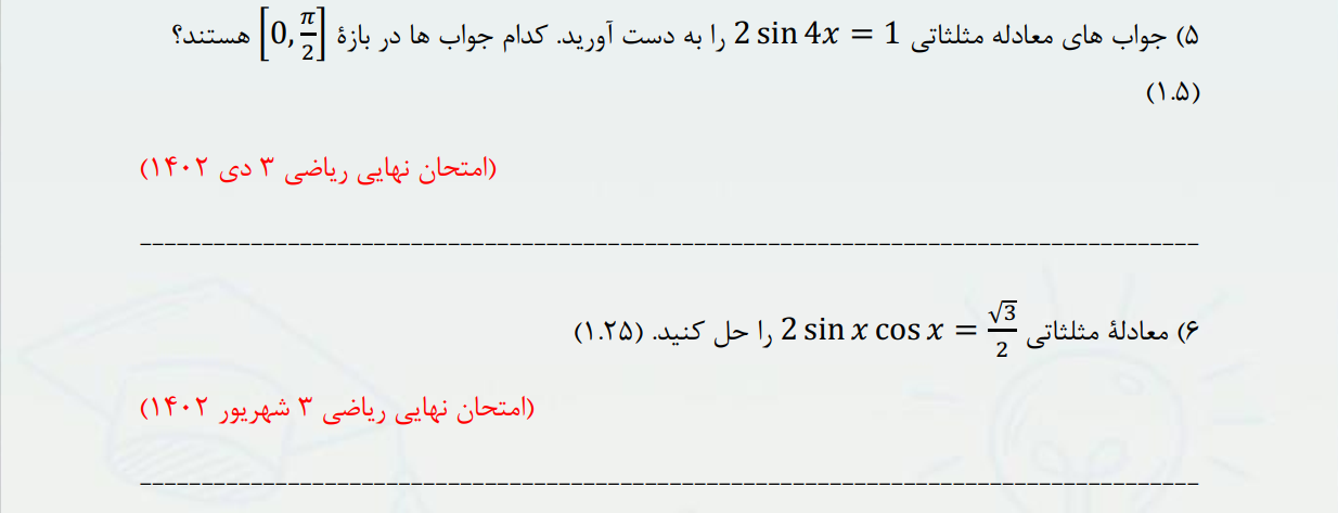 همچنین از طریق لینک زیر میتوانید به سوالات نهایی باقی دروس نهایی دسترسی داشته باشید.
