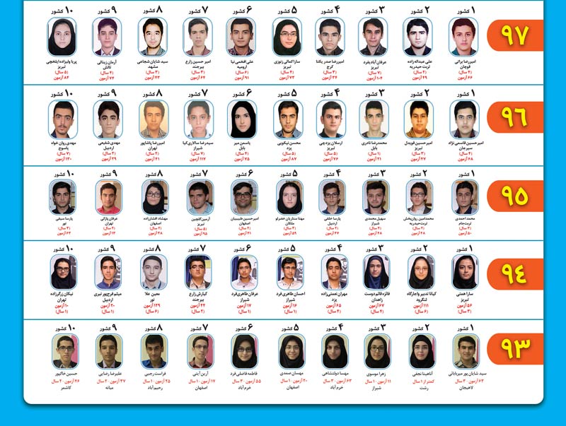 برای مشاهده مصاحبه ، ترازها و تعداد آزمون های در کانون برروی لینک نام هر رتبه برتر کلیک کنید.