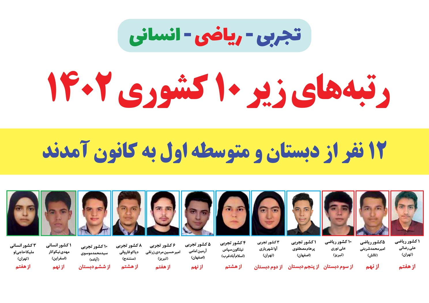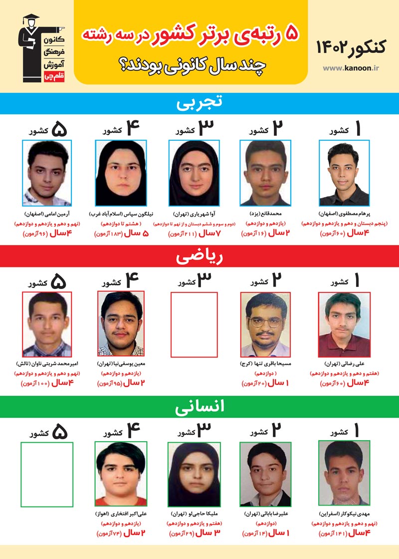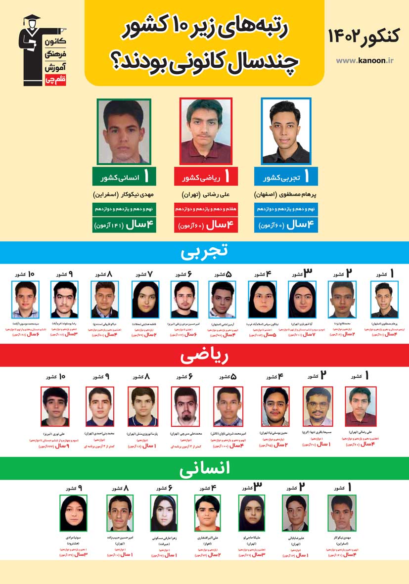 اسامی نفرات برتر گروه علوم انسانی کنکور 1402: