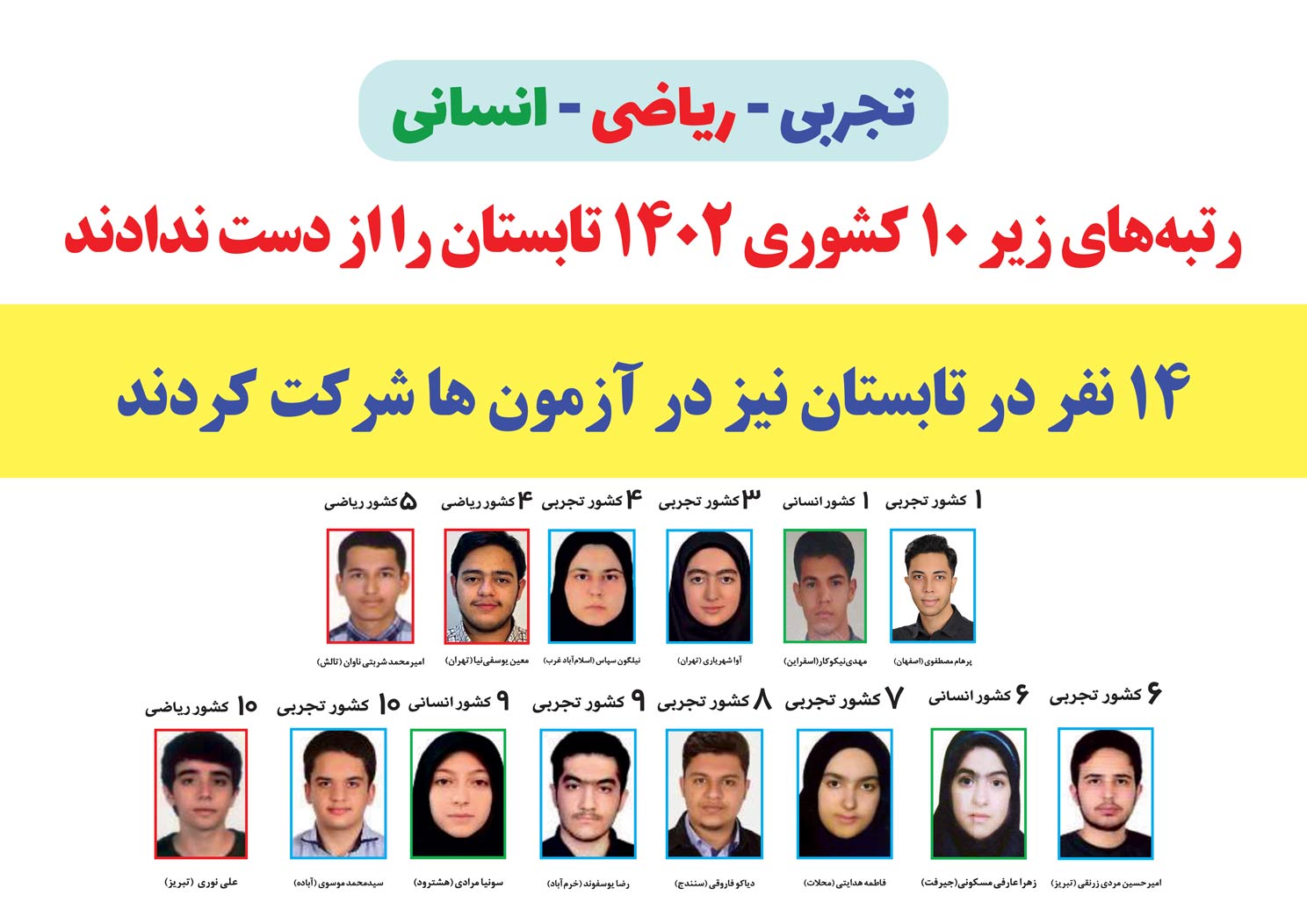 اسامی نفرات برتر گروه علوم تجربی کنکور 1402: