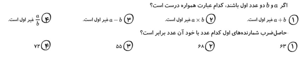 نکته : ترتیب اعداد اول به صورت مقابل است :
