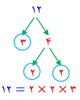 مثال : شمارنده های اول عدد 12 را از روش نمودار درختی به دست آورید.