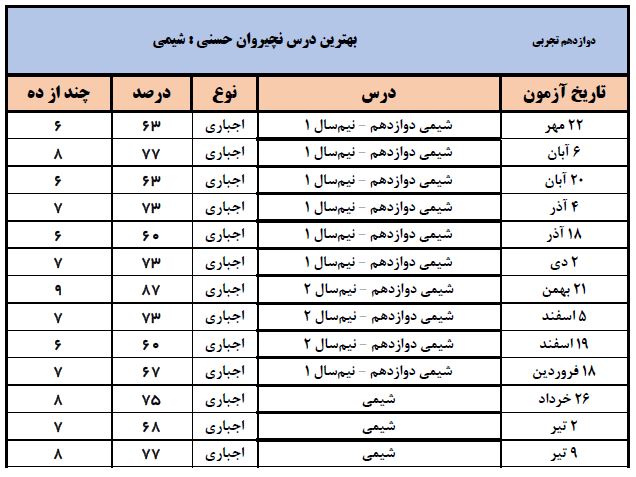 نچیروان حسنی، قهرمان پیوستگی، نمودار پیشرفت در 3سال، 114 آزمون و بهترین درس