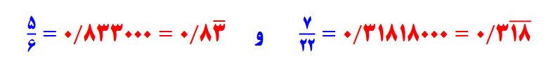 - عددهای اعشاری متناوب ساده : اگر در تقسیم صورت بر مخرج کسر در خارج قسمت عددی مرتب تکرار شود آن را متناوب ساده می گویند.