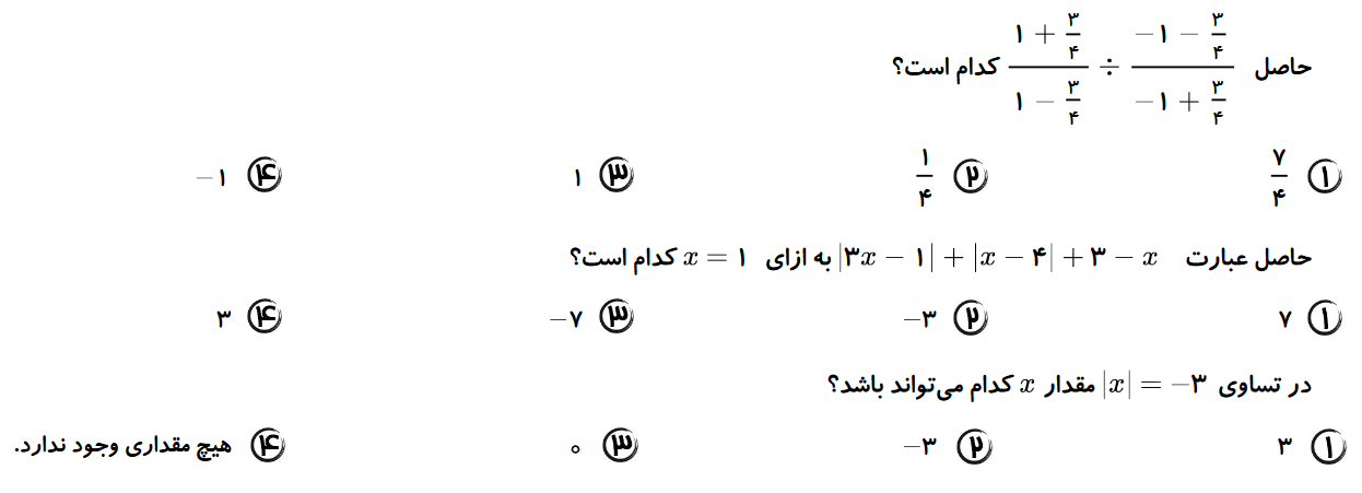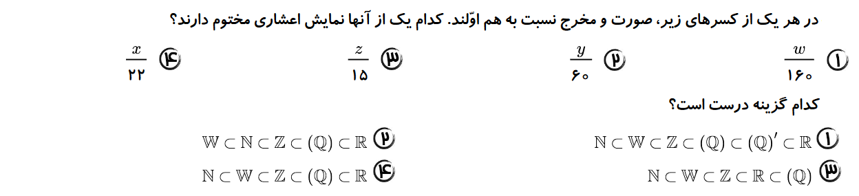 پاسخ تشریحی: به تبدیل به اعشار کسر 3/4 بزرگ تر است.