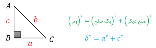 رابطه فیثاغورس : این رابطه فقط در مثلث قائم الزاویه نوشته می شود :