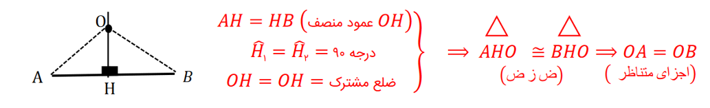 نکته : هر نقطه روی عمود منصف یک پاره خط از دو سر پاره خط به یک اندازه است.