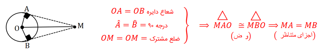 مثال : نشان دهید طول دو مماس رسم شده از نقطه خارج دایره با هم برابر هستند.