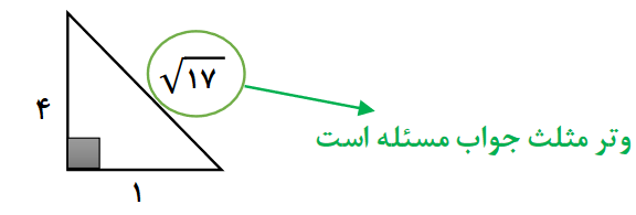 مثال : پاره خطی به طول 17√ رسم کنید.ابتدا دو عدد پیدا کرده که مجموع مربعات آن دو عدد17 شود :
