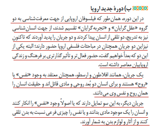 در دوره جدید اروپا فیلسوفان از جهت انسان شناسی نیز دو دسته شدند.