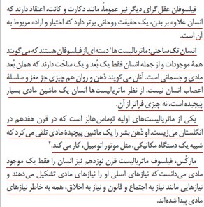 نکات: ماتریالیست ها جزو دسته دیگر هستند آنها تنها جسم را قبول دارند و می گویند انسان تک ساحتی است و ذهن و روان هم چیزی جز مغز و سلسله اعصاب نیست.