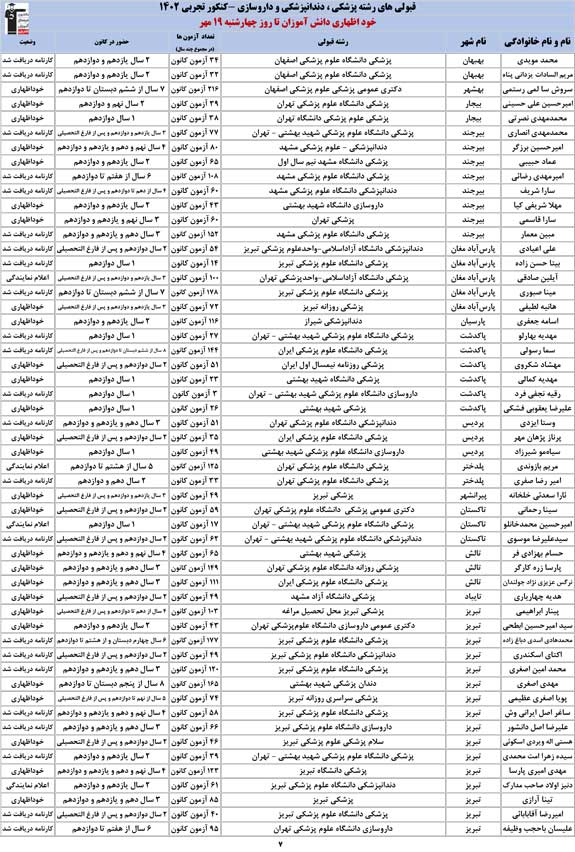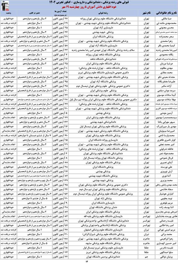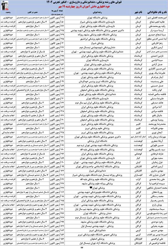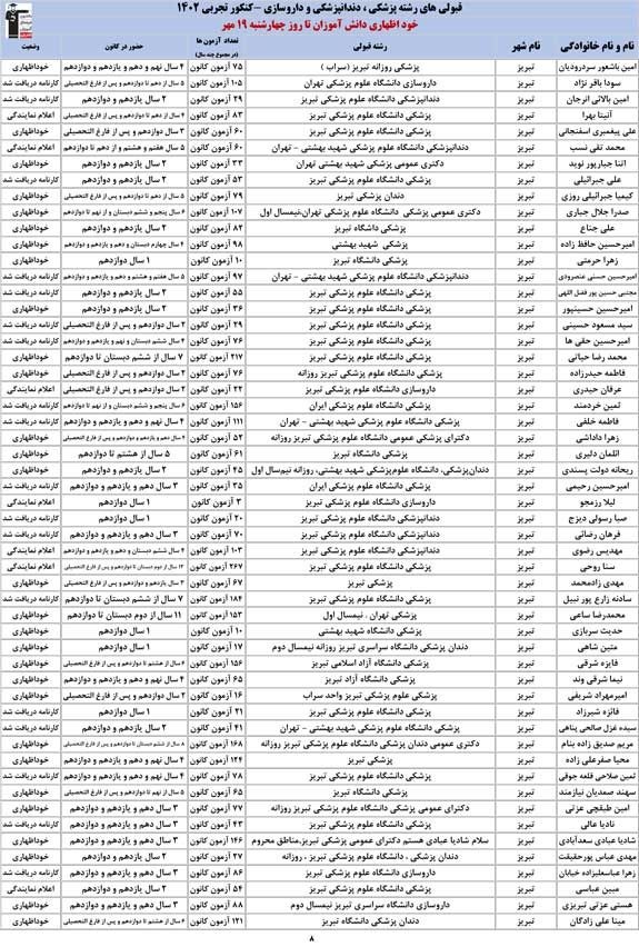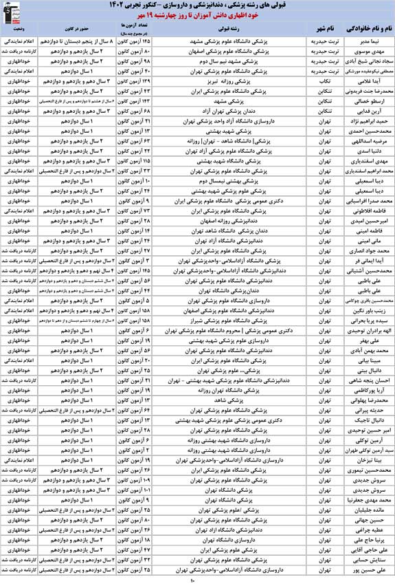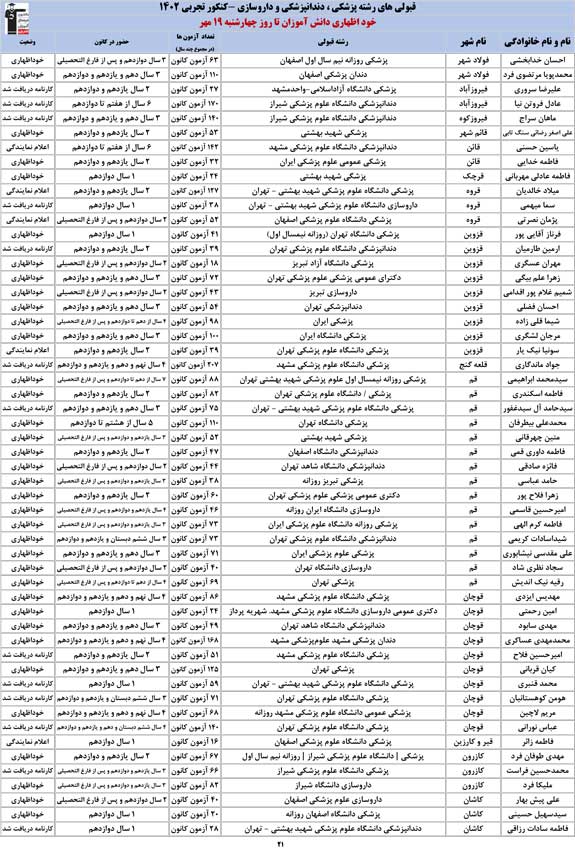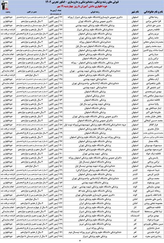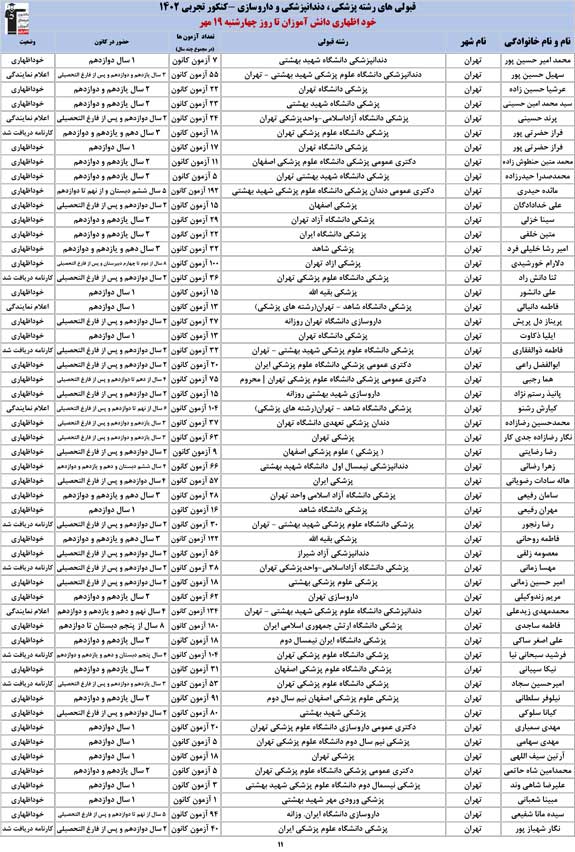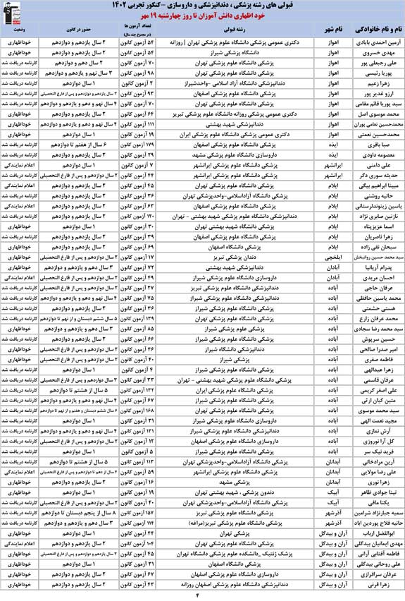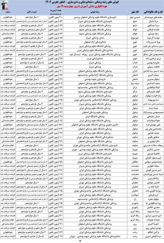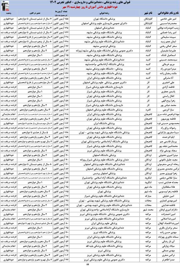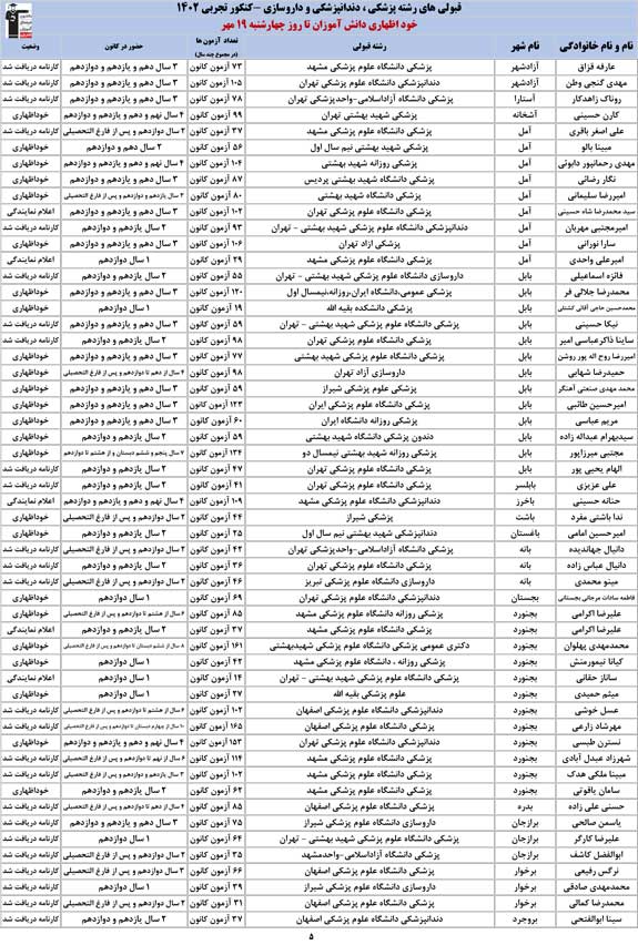 کانونی هایی که در رشته پزشکی ، دندانپزشکی و داروسازی قبول شدند-کنکور1402