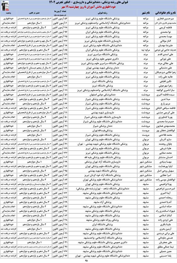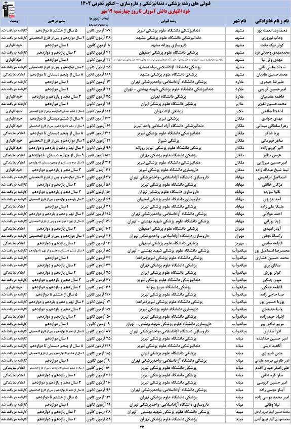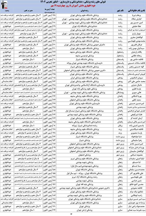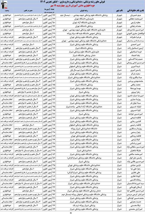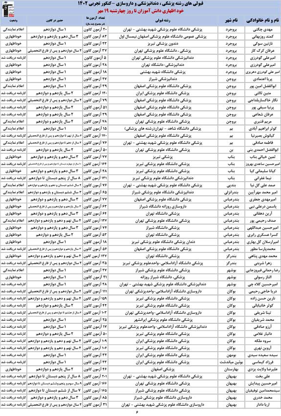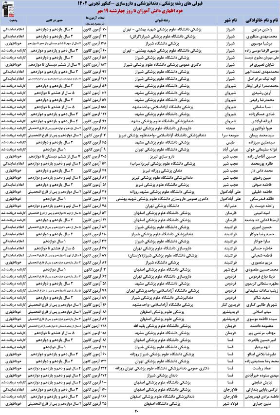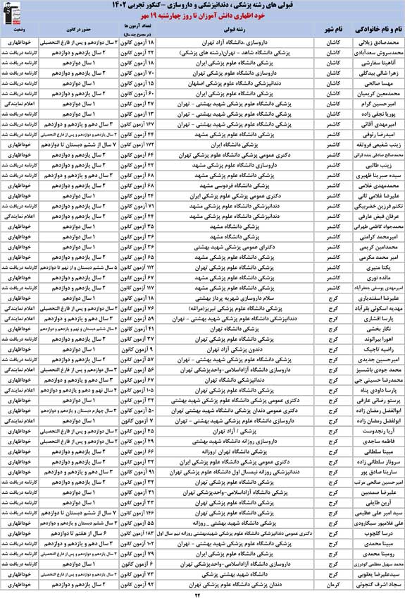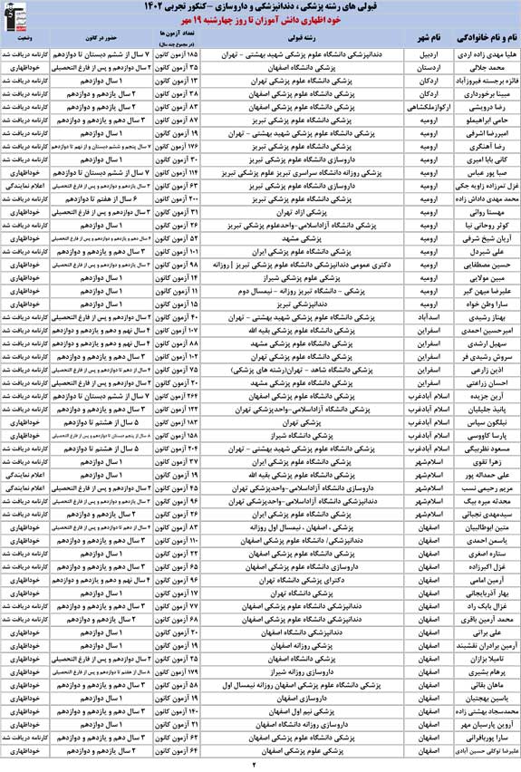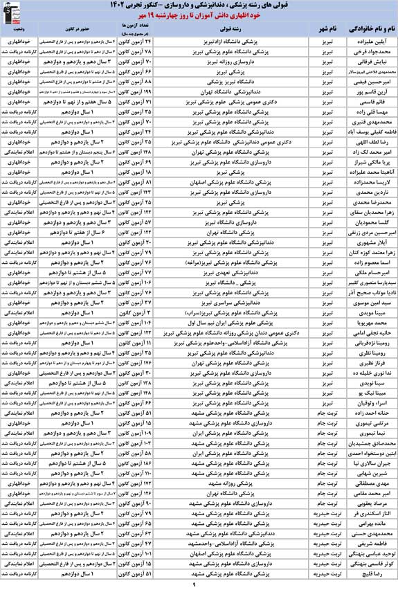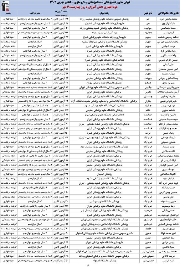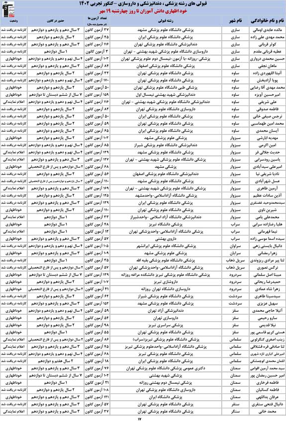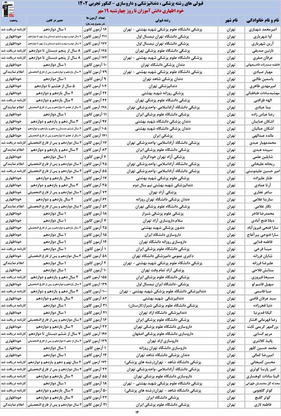 کانونی هایی که در رشته پزشکی ، دندانپزشکی و داروسازی قبول شدند-کنکور1402