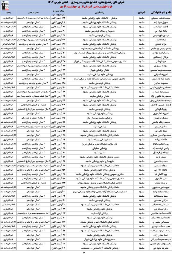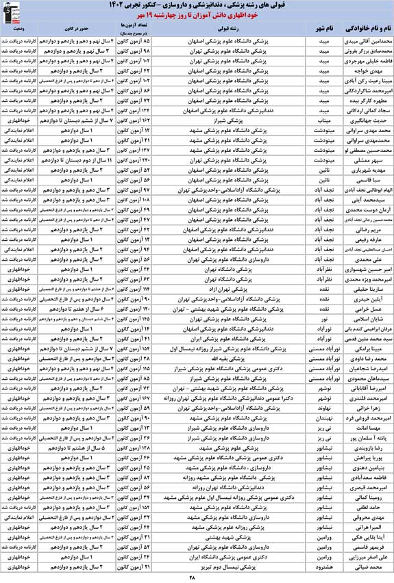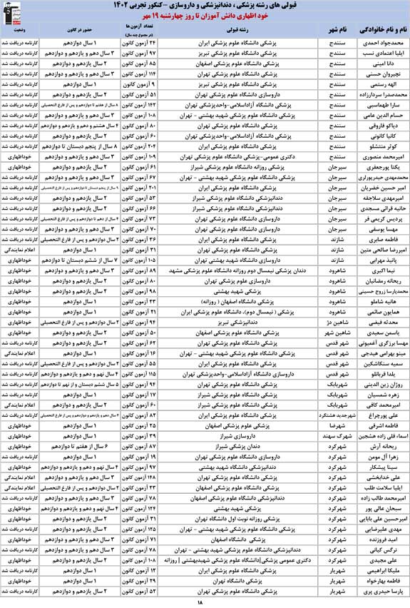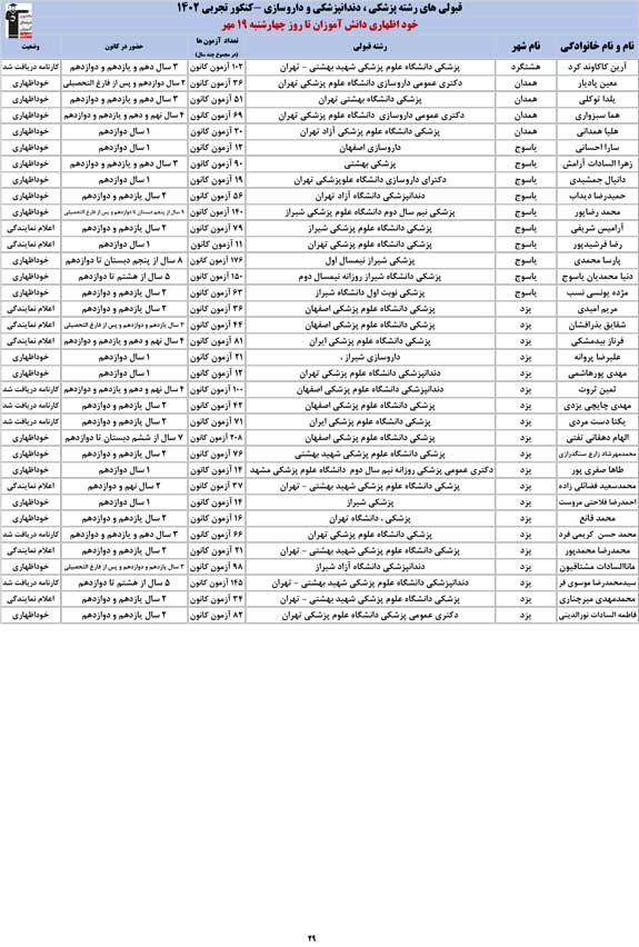 نتایج اعلام شده بر مبنای خوداظهاری قبول شدگان است. این نتایج پس از راستی آزمایی و کنترل با کارنامه ها مجددا بارگذاری خواهد شد.