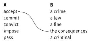 انجام دادن جرم، وضع کردن قانون، جریمه کردن و .... در انگلیسی چه فعل هایی هستند؟