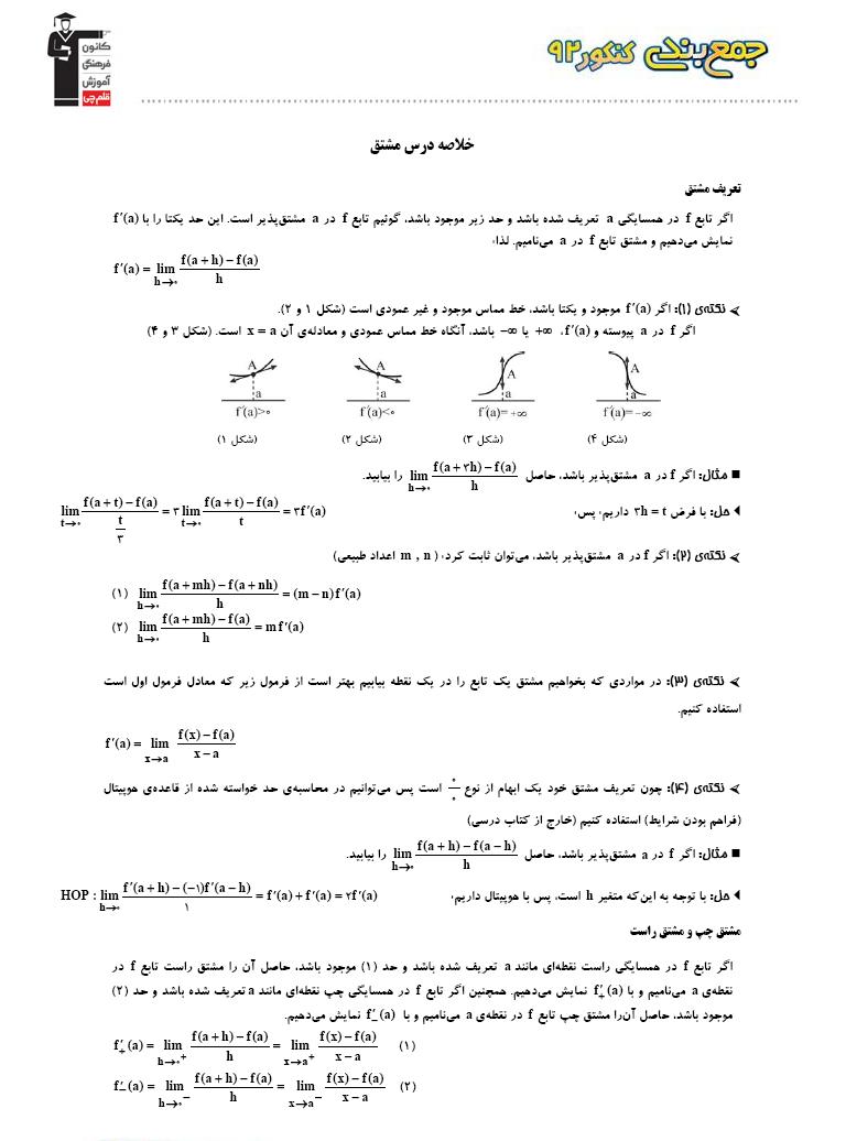 جمع بندي درس ديفرانسيل مجموعه سوال مشتق