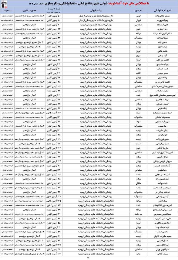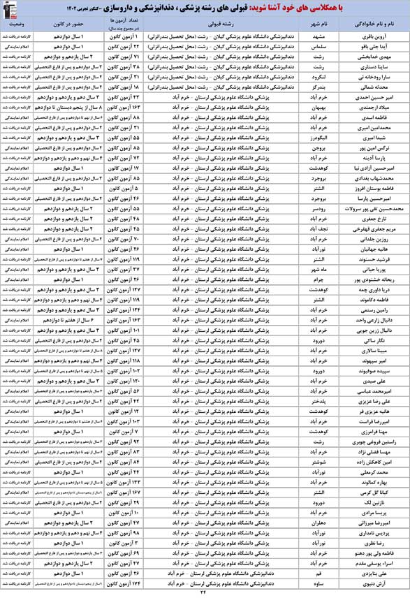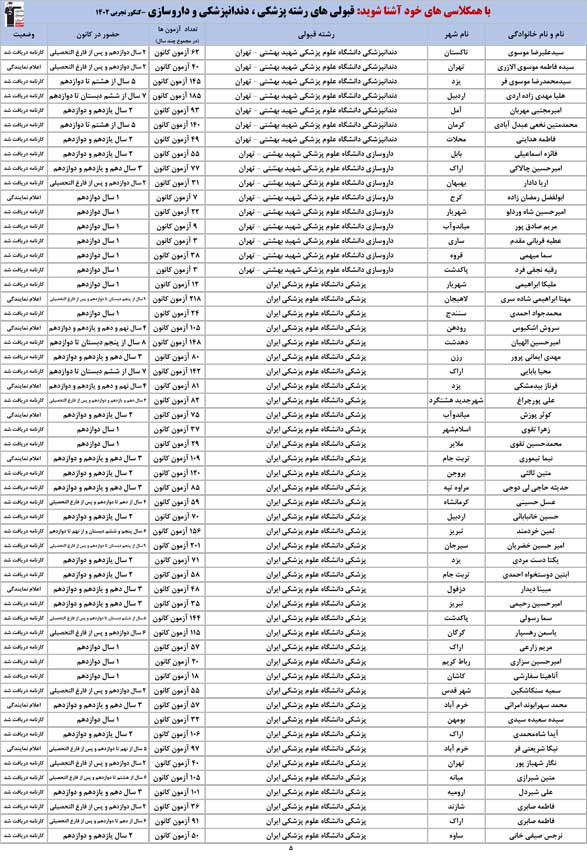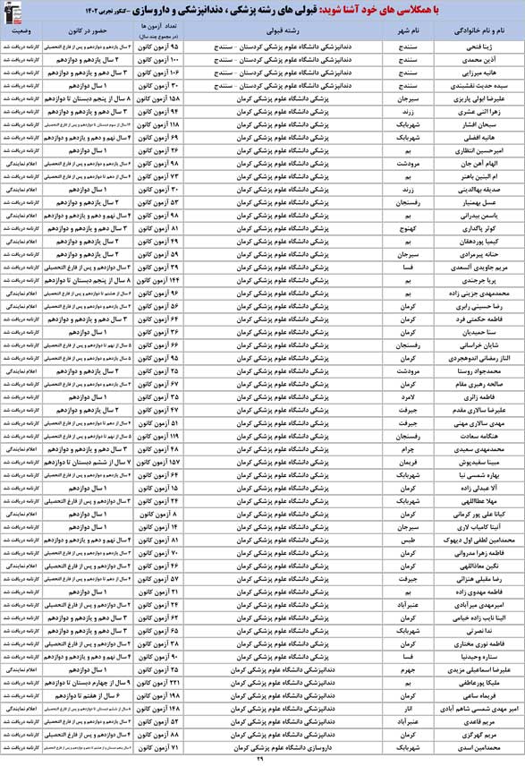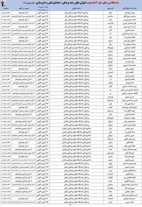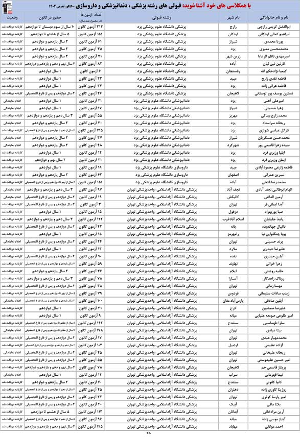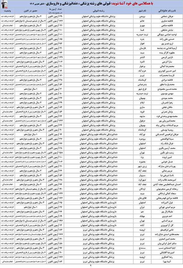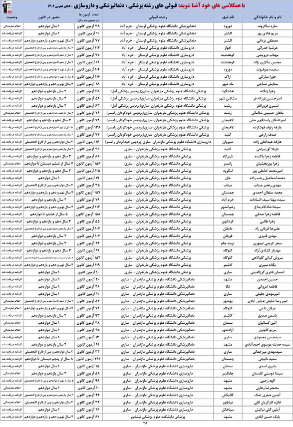 جدید: قبولیهای پزشکی،دندان ودارو 1402 (خوداظهاری تا 19 مهر)