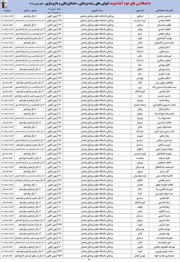 قبولی های رشته پزشکی ، دندانپزشکی و داروسازی -کنکور تجربی 1402
