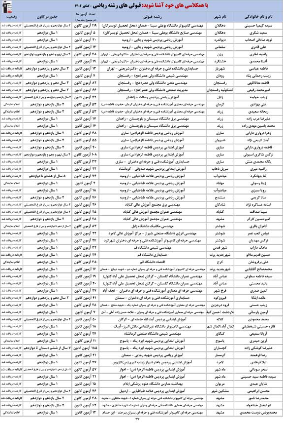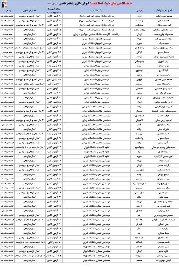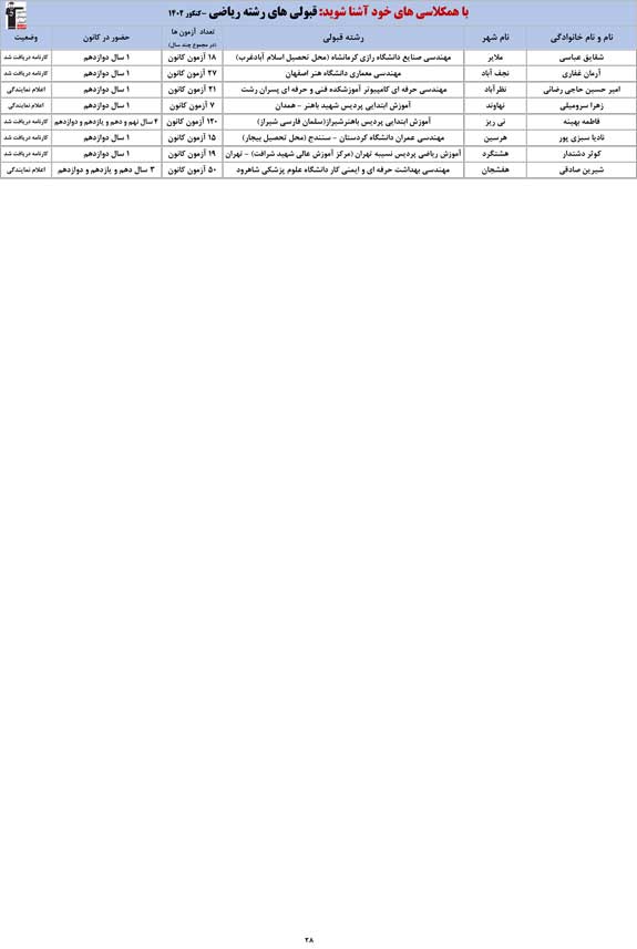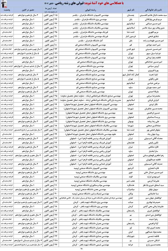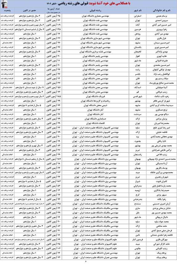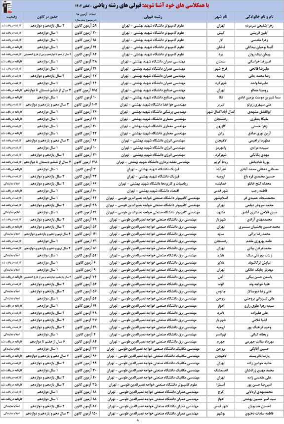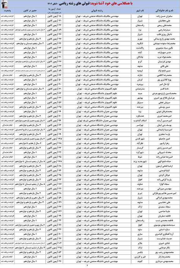 قبولیهای کانونی رشته ریاضی کنکور 1402 (خود اظهاری تا 19 مهر)