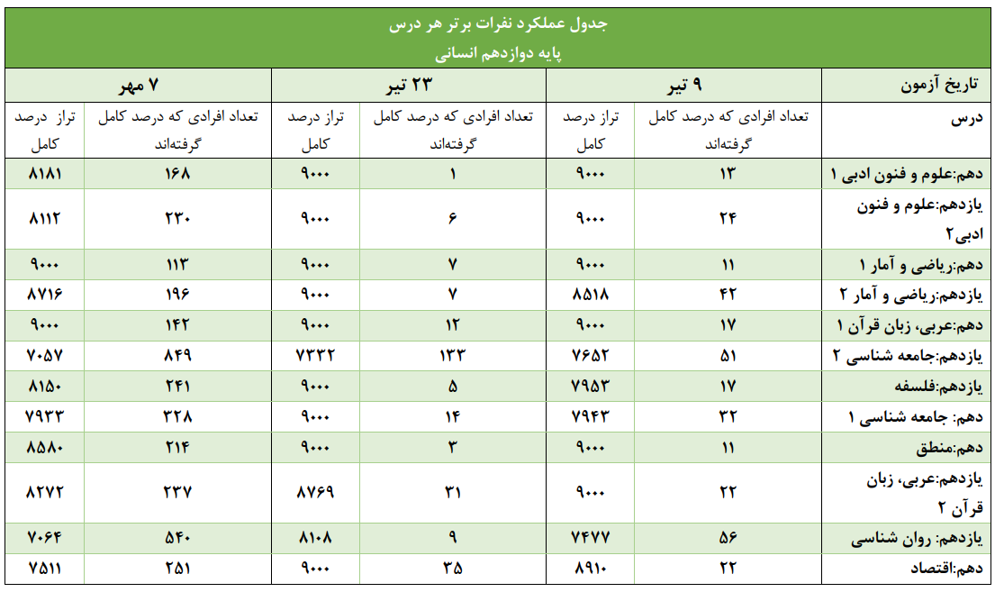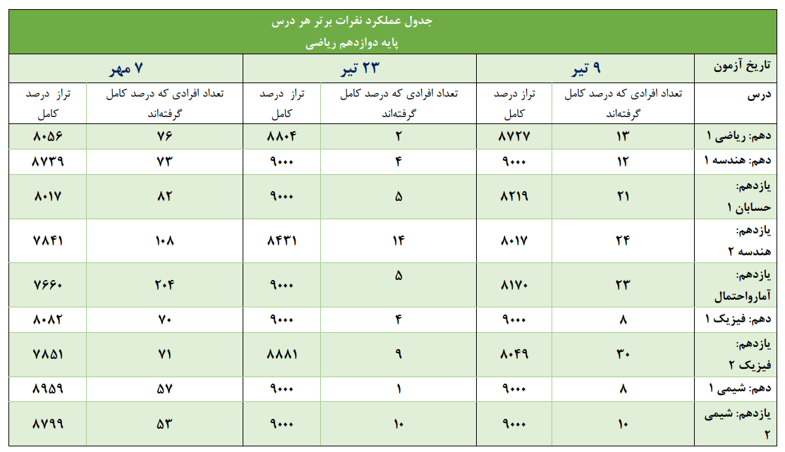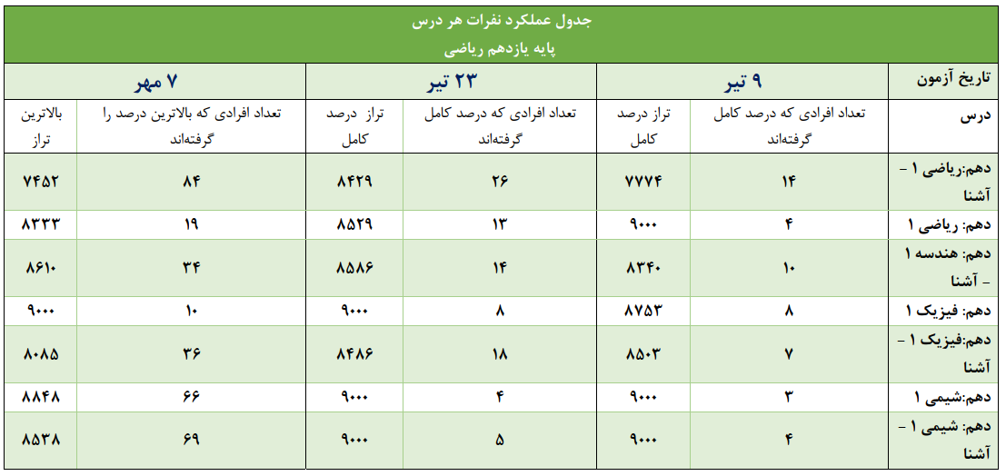 بودجه بندی 3 آزمون سکوهای مقایسه ای مربوط به تمام مباحث سال گذشته شما بود (در پایه دوازدهم این بودجه بندی شامل پایه های دو سال قبل یعنی دهم و یازدهم بوده است.)