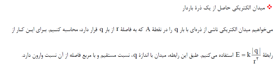درسنامه میدان الکتریکی حاصل از ذرۀ باردار