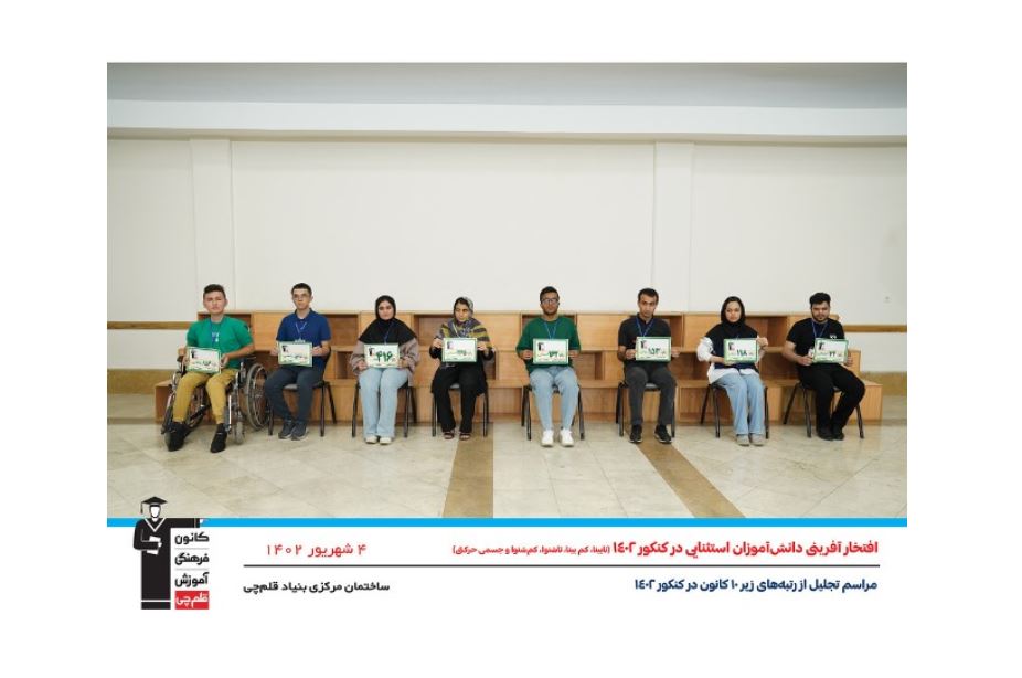بنده خودم نابینا هستم و در حال حاضر دانشجوی دکتری مدیریت آموزشی دانشگاه تهران و در سال 96 با کسب رتبه 1 در آزمون ورودی دکترای دانشگاه تهران پذیرفته شدم. افتخار این را دارم که به مدت 12سال سابقه همکاری با بنیاد علمی آموزشی قلمچی را در بخش دانش آموزان استثنایی داشته باشم. بنیاد هر سال بدون هیچ گونه شرطی تمامی دانش آموزان استثنایی را در تمامی آزمونها بورسیه میکند و در سال تحصیلی 1402-1401 تعداد 2305 دانشآموز استثنایی بورسیه بنیاد بودند. در کنکور 1402، هفده نفر از دانش آموزان استثنایی موفق به کسب رتبههای زیر 1000 شدند. از این 17 نفر، 12 نفرشان در بیش از 50 آزمون برنامهای کانون شرکت کردند و امروز در جشن تجلیل از نخبگان کشوری میزبان 9 نفر از این عزیزان هستیم.