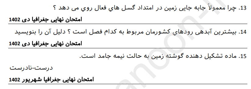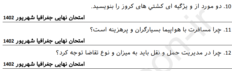 سوالات امتحان نهایی جغرافیا دوازدهم- کل دروس