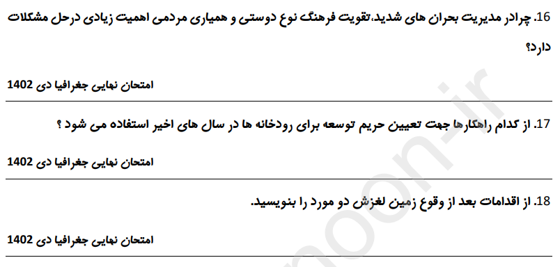 دانلود مستقیم تمام سوالات امتحان نهایی جغرافیا دوازدهم | ||