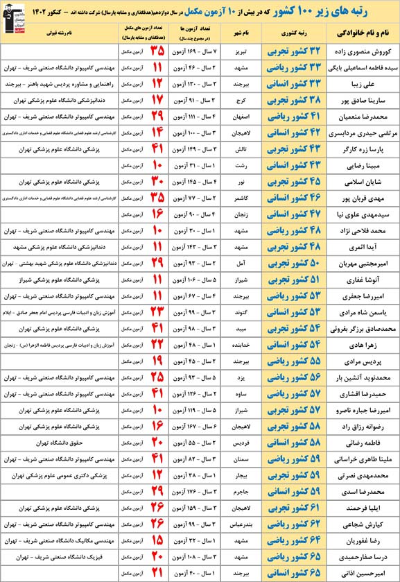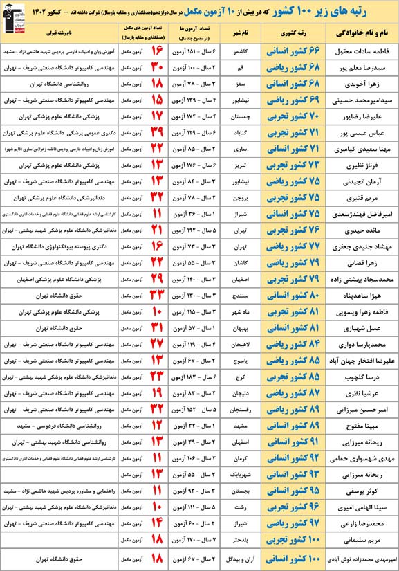 رتبههای زیر 100 کشور در چند آزمون هدفگذاری شرکت کردند؟ کنکور 1402