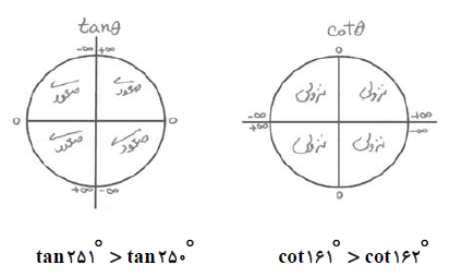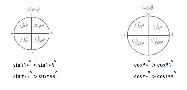 بررسی نسبتهای مثلثاتی در هر ربع: