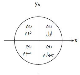 نکته: محورهای x و y دايره مثلثاتي را به 4 قسمت تقسيم مي كنند. به هر قسمت يك ربع مثلثاتي میگوييم.
