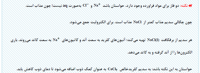 درسنامه برقکافت سدیم کلرید مذاب