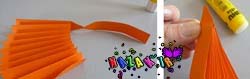مستطيلي که براي چتر قورباغه در نظر داريد را برداشته و نواري که به صورت قرينه مانند شکل زير برش خورده و اندازه ي آن هم اندازه ي عرض مستطيل است را روي يکي از عرض هاي مستطيل بچسبانيد .